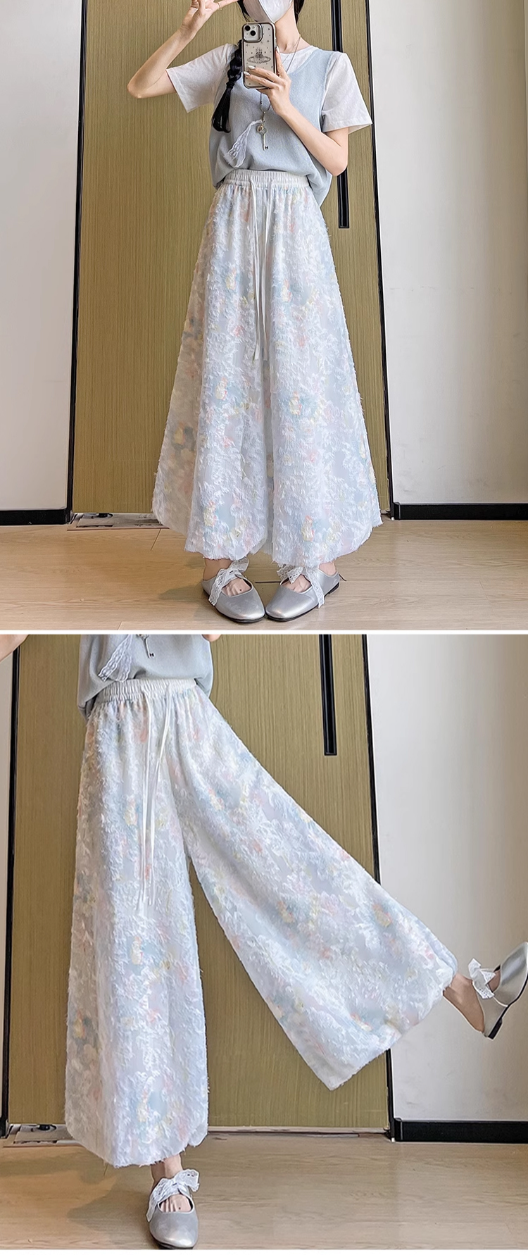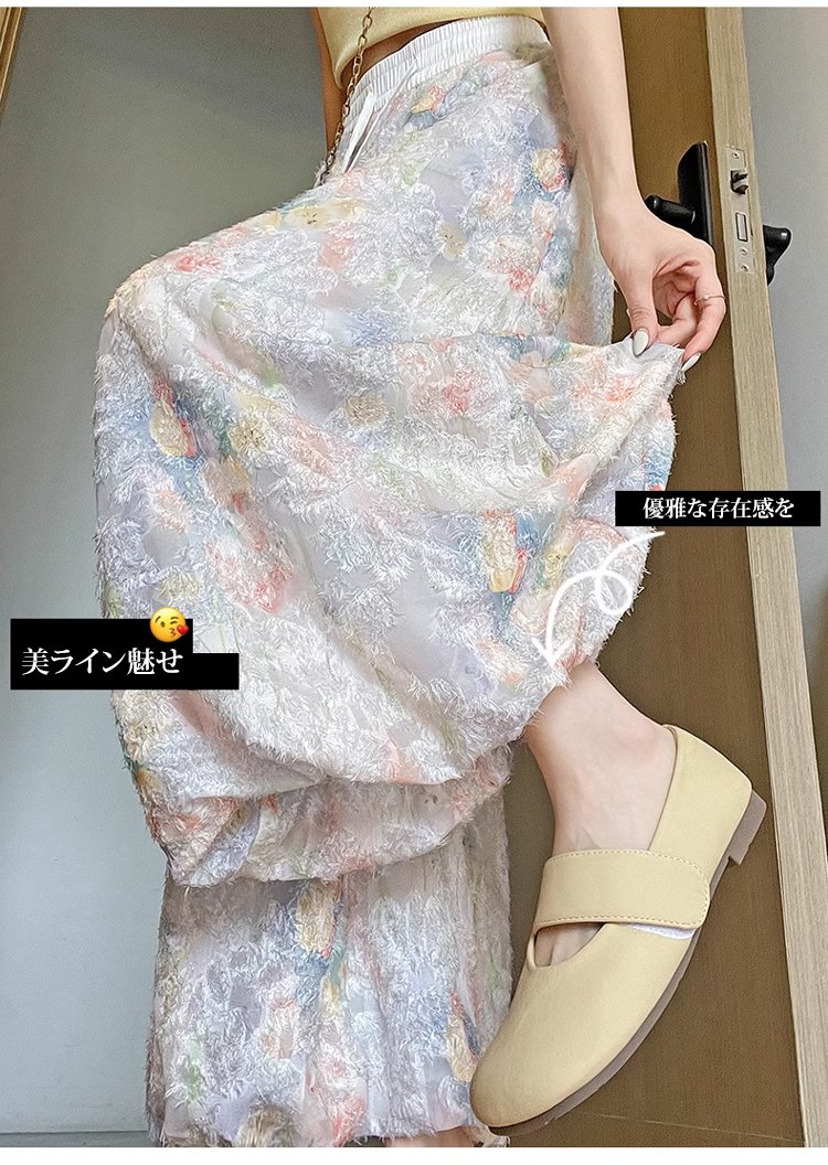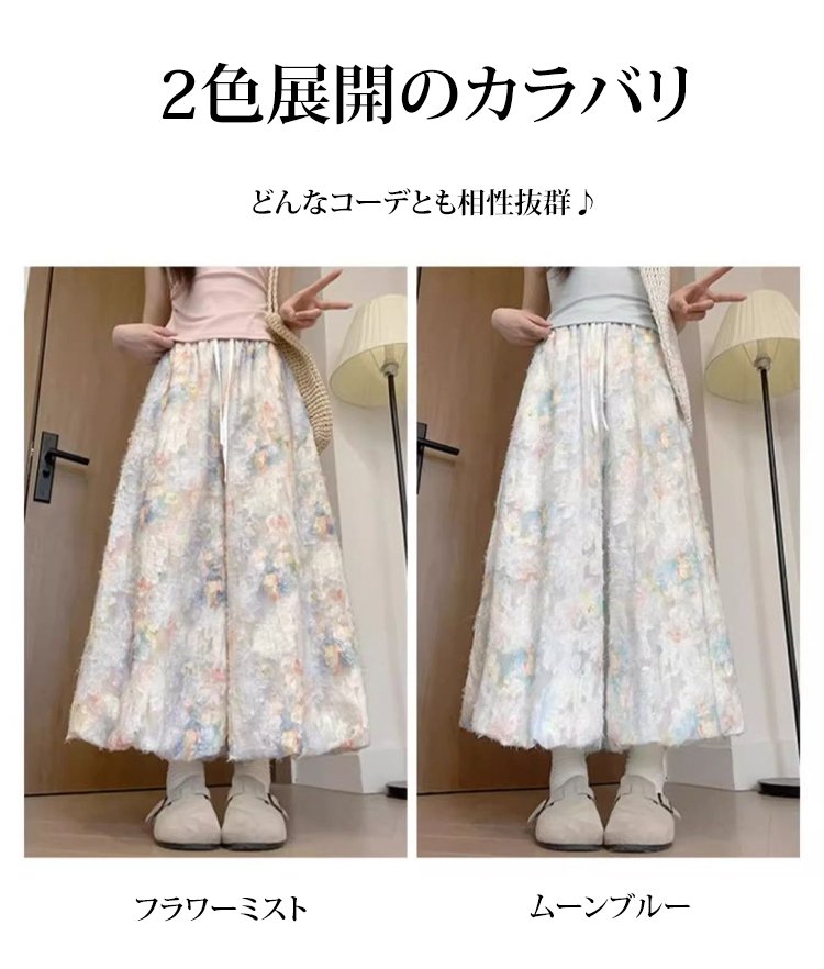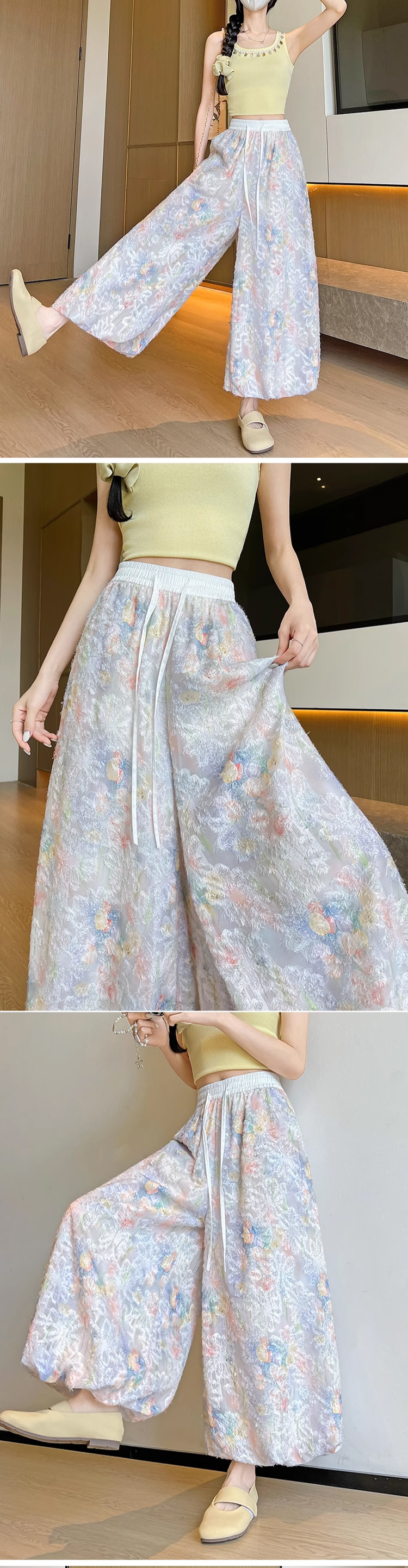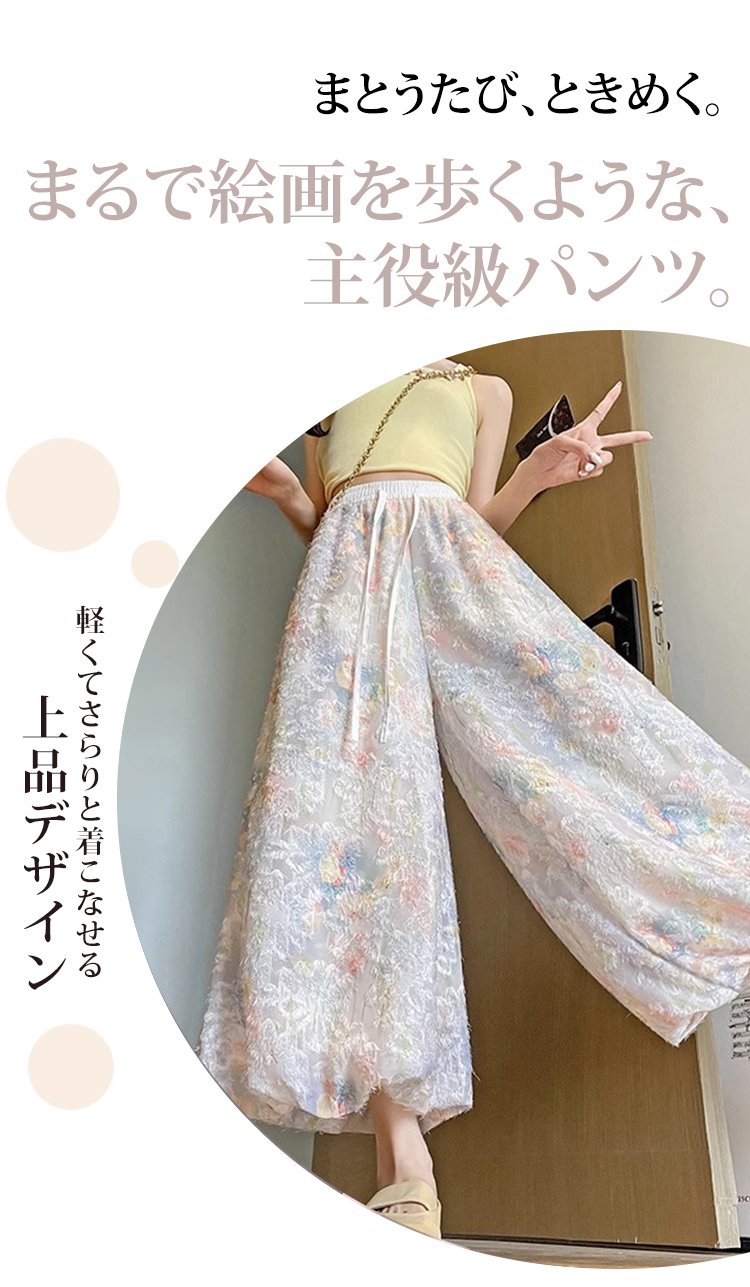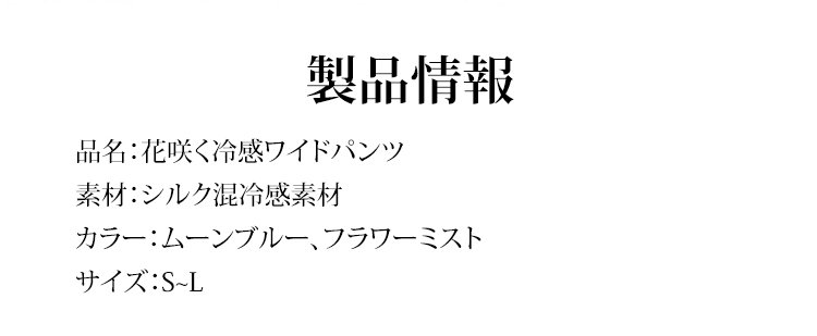 軽やかで動きやすい花咲く冷感ワイドパンツ