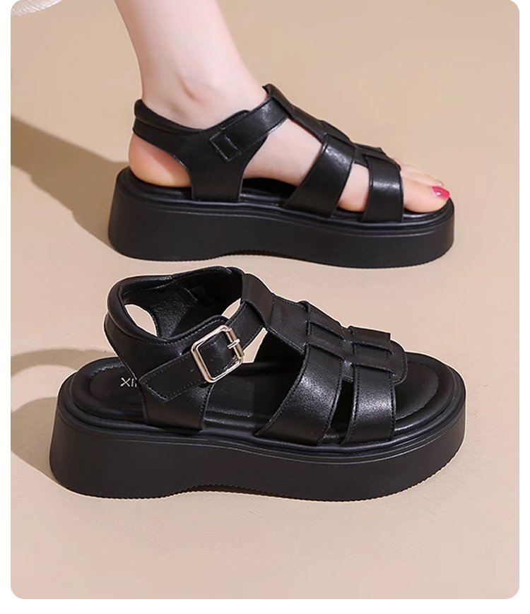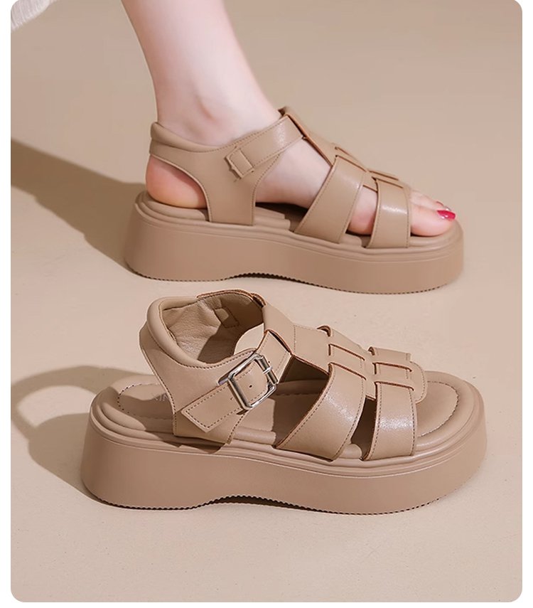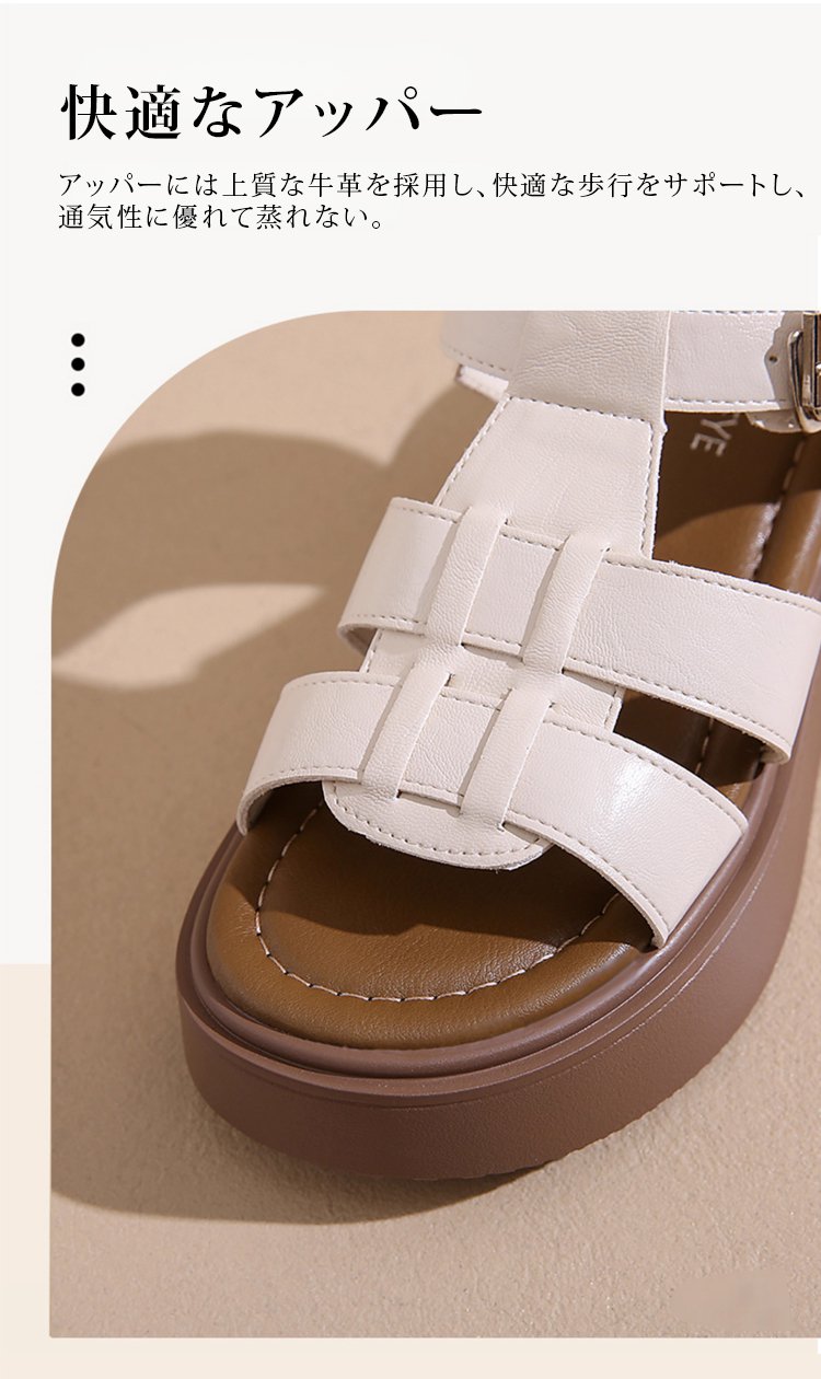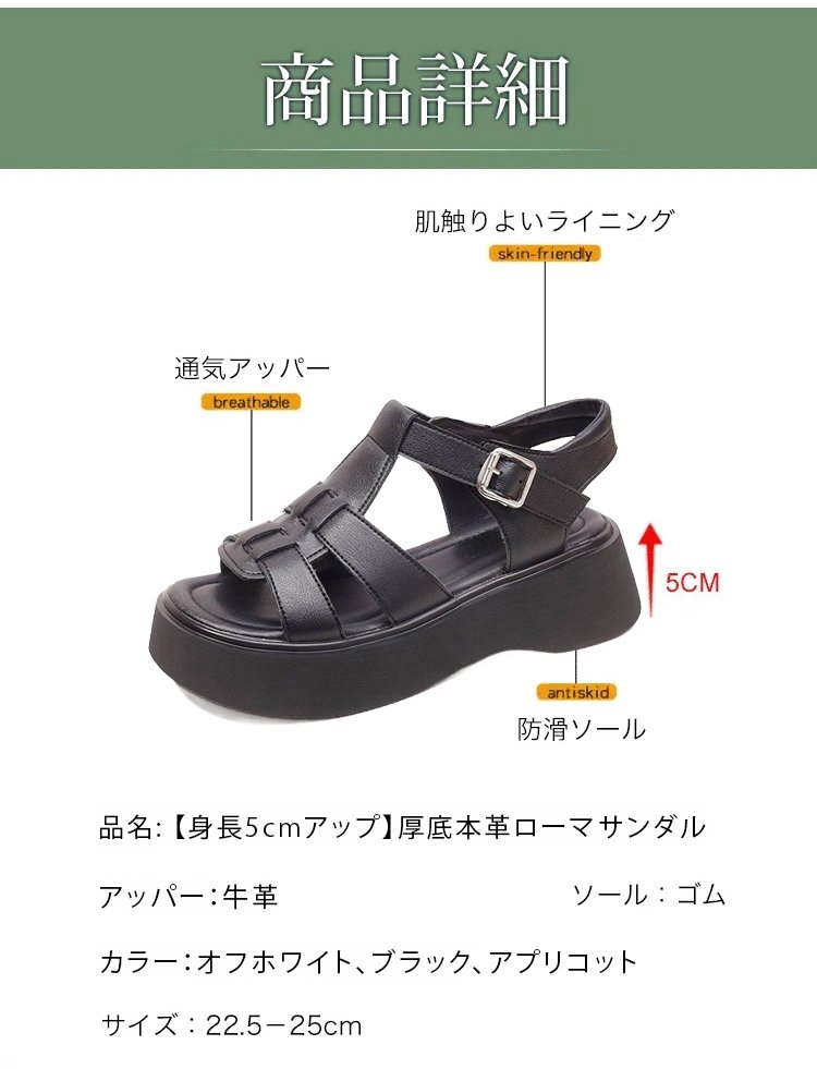 身長5cmアップ厚底本革ローマサンダル全体画像
